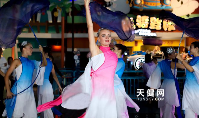 当天,发现王国特别策划了 " 乐享中秋,聚惠发现 " 系列活动。高颜值的外国女孩子们和中国小朋友一道,身着汉服,为游客带来《彩云追月》的快闪表演。