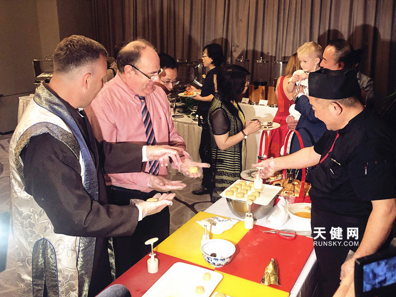 外国友人体验月饼制作过程