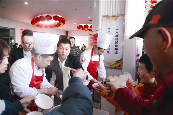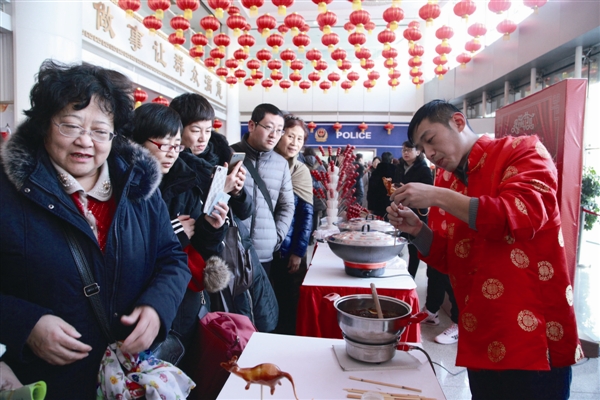 邀请专业人士现场串糖葫芦、炸丸子,邀请李老汤餐饮连锁现场制作“福寿面”,邀请参加活动的市民品尝,感受舌尖上的年味儿。