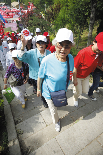 参与徒步者不乏白发苍苍的老人