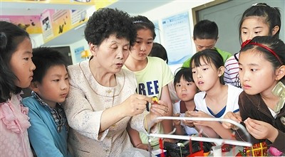 民间“粽子”高手在教学生做五彩粽子及香囊、葫芦等端午节饰物。