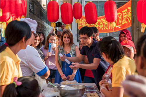 大连理工大学交流中心外国留学志愿者生学习制作传统月饼