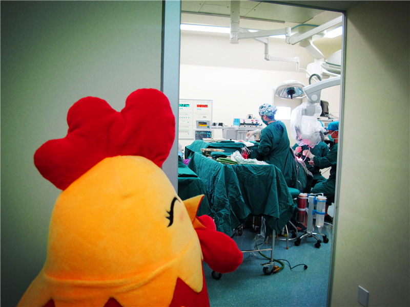 中心医院——【神外一】 小丁酉来到第一手术室,正好遇见神外一的丛培雨主任正在做一例脑血管瘤的手术,听说没有消毒不让进手术室,小丁酉只好躲在门外静静地看着。