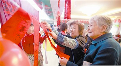 西岗区站北街道青年志愿者走进养老院,和老年朋友一起猜灯谜。