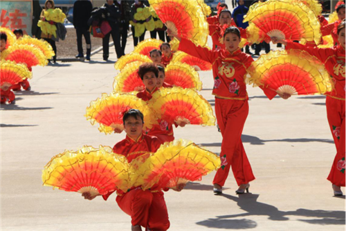 时而舞动着手中的扇子,时而挥舞着红色的手绢,时而甩动着腰间的彩绸,表演形式别具一格。
