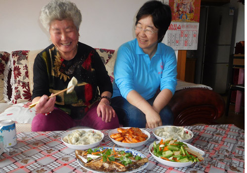 华国社区66岁的姜淑君老伴和儿子早逝,老人独自将孙子养大,今年她毅然送孙子当兵,高风亮节令人敬佩。在老人家中,厨娘姜黎明为老人包了三鲜馅饺子,并精心搭配了红烧排骨、烤大虾等菜肴,欢声笑语中老人度过了一个快乐而难忘的重阳节。