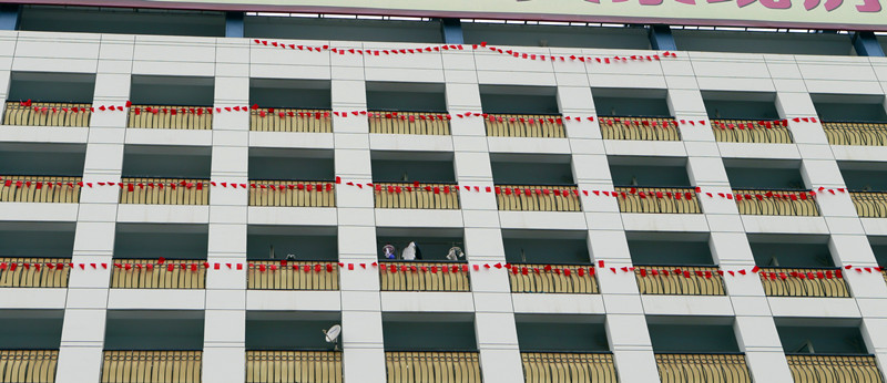 大连市金州新区外企TDK宿舍彰显“中国红”,节日气氛浓厚。