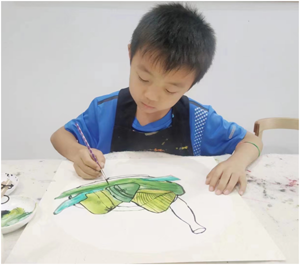 活动开始前,志愿者和老师们为孩子简单讲解了绘画技巧,看着桌上整齐地摆着水粉、画笔与绘画衣物布料,小朋友们兴奋地拿起笔跃跃欲试。在自由创作环节,家长和孩子们分工协作,家长俨然幕后军师,负责出谋划策,小朋友们则充分发挥想象力,在画纸上勾勒出一幅幅可爱活泼、生动形象、色彩丰富的儿童画,充分展现出孩子们的童趣、童心与童真。