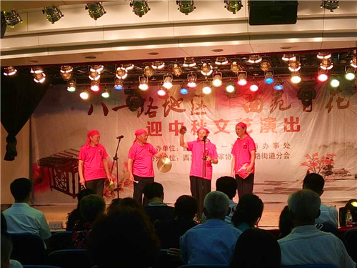 为认真贯彻区委、区政府“文化为民 文化惠民”理念, 9月8日下午,八一路街道联合辖区单位组织八一地区曲艺爱好者,在西岗区市民文化活动中心举办了八一路地区“曲苑百花迎中秋”文艺演出。区委常委、宣传部长于学义,副区长谭淑萍,区文体局、八一路街道主要领导出席活动。