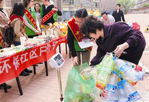 日前,中山区昆明街道百余位居民拿着废旧电器、报纸等物品参与环保兑换活动。自市文明办与市环保局共同制定《大连市社区环保兑换超市创建工作方案》以来,已有50余个社区居民定期通过用废品兑换积分,用积分购买与超市价位等同的产品。