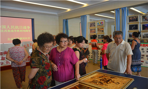 为纪念中国人民抗日战争胜利暨世界反法西斯战争胜利70周年,8月31日下午,北京街道在黄河社区举办庆祝抗日战争胜利暨世界反法西斯战争胜利70周年图片、书画、剪纸、摄影作品展。弘扬了以爱国主义为核心的伟大民族精神。展览现场展示了图片、书画、剪纸、摄影作品共计240余件,展示了中华民族在危难时刻进行的艰苦抗战,世界人民为反法西斯战争胜利付出的巨大代价和团结合作、同仇敌忾的精神。展厅内,街道、社区党员干部驻足欣赏、细细品味。大家纷纷表示,要牢记历史,珍惜和维护来之不易的和平。