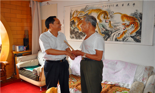在中国人民抗日战争暨世界反法西斯战争胜利70周年纪念日来临之际,区民政局受区委、区政府的委托,走访慰问了11位抗战老兵,为他们送去了党和政府关怀与温暖,并将5000元慰问金亲自送到抗战老兵的手中,感谢他们在为争取民族解放与国家独立的斗争中的牺牲与奉献,真挚地祝愿老人们身体健康、晚年幸福。抗战老兵和家属们十分感谢党和政府对他们的关心,感谢国家没有忘记他们,感谢领导的走访慰问,抗战老兵们纷纷表示,今后还将保重好身体,继续教育后代铭记历史、为国家的繁荣昌盛发挥余热、贡献力量。