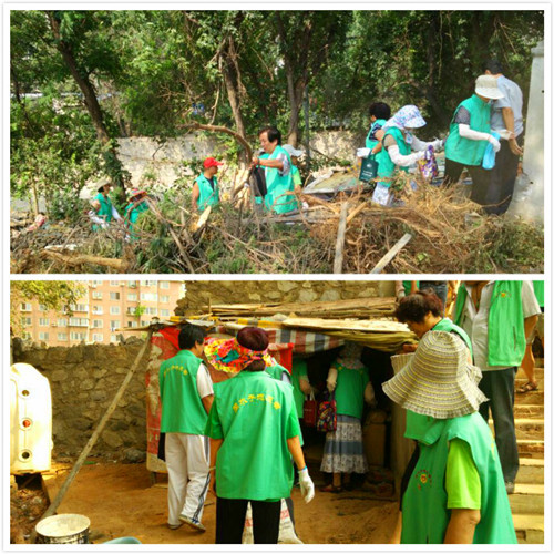 壹品天城社区进驻后,便把整治此处环境卫生列为首要解决的任务。经街道城管科和社区城管专干不断协调、沟通相关单位后,八月末,“垃圾场”清理工程启动。为了工程的顺利开展,壹品天城社区联合周南社区、辖区派出所、壹品天城物业等,组织工作人员与志愿者50余人开展“绿马甲手拉手,共建美丽家园”环境清理工作,拆除私搭的窝棚,拔除横生的野草,清理路面垃圾。