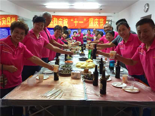 28日上午,北京街道黄河社区华府二期老年人互助会开展了以“感恩伟大祖国”为主题的百家宴活动。互助会40多名成员欢聚一堂,做出40余道自家拿手菜互相品尝,丰盛的菜品让赴宴的成员大饱口福。他们还给菜品取了新颖的名称,“忆苦思甜”、“长征途中”、“邻里和谐一家亲”等等。大家一边聊家常,一边高唱“我的祖国”,现场一片欢声笑语、其乐融融的景象。互助会成立以来一直秉承“互助友好、抱团养老”的宗旨开展各类活动,这样的活动拉近了邻里之间的距离,建立了深厚的邻里情谊。