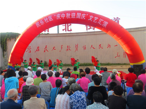 近日,站北街道民乐社区举办了“庆中秋 迎国庆”文艺汇演。演出在民乐艺术团的舞蹈《我和我的祖国》中拉开了序幕,葫芦丝合奏《月光下的凤尾竹》、太极拳《武功扇》等表演为演出增添了不少喜气,爵士舞表演跳出了社区居民对祖国繁荣富强的祝愿,诗朗诵《我爱你中国》展现了中华民族的腾飞,男生独唱《最美的歌唱给妈妈》将演出推向高潮。站北街道民乐社区通过举办此次活动,丰富了社区居民的文化生活,并向伟大的祖国献上了最诚挚的祝福。