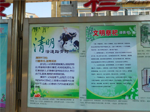 “帝里重清明,人心自愁思”。自古以来,清明节就有禁火、祭祖、扫墓、踏青等风俗,然而,现在越来越多的人却误将清明等同为上坟,把扫墓理解成焚烧祭品,在我国传统节日清明节即将来临,为提升辖区文明程度和百姓文明素质,营造“文明祭祀,绿色清明”的良好氛围,使辖区居民度过一个健康、文明、绿色、低碳的清明节,甘井子区兴华街道党工委在全辖区内发出了“倡导绿色清明,献出文明之爱” 号召。