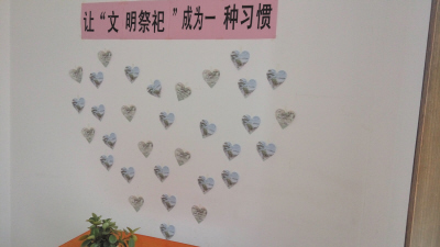 这是大连市沙河口区李家街道锦华社区为倡导文明祭祀,举办的以“捎去天堂的祝福—你在那边还好吗”为主题的清明祭祀活动。锦华社区专门空出一间办公室,设立为寄思屋,并在寄思屋里设置了天堂祭语墙,向每位前来祭祀祈福的居民派发一支专用自动消失笔,所写的字迹会在一两个小时中渐渐变淡褪去,这就意味着对逝者的祝福被捎去了天堂。很多居民对这种新奇的祭祀方式很认同,尤其是外来务工的居民,均表示由于工作太忙既没有时间上网祭祀,路远又不能回家,社区所提供的这种遥祭故人的形式完全符合了他们的心理。