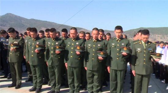 在青松与翠柏映衬的烈士纪念塔前,参加祭奠人员向革命烈士敬献花圈,现场所有人默哀1分钟,举行了隆重的祭奠仪式。