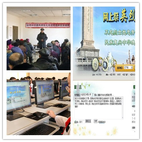 活动现场,社区工作人员和辖区片警向居民们讲解了与清明相关的民俗文化及安全防火知识,倡议选择树葬、花葬、草坪葬与海葬等多种环保丧葬方式。引导大家认知传统、尊重传统、继承传统、弘扬传统,增强民族认同感和凝聚力,增进爱家爱国“家国”情怀。同时组织引导党员群众、青少年学生传承“文明祭祀”,发挥网络优势特点,利用虚拟空间燃烛、焚香、献花、撰写生平事迹、上传墓志铭,凭吊祖宗,缅怀先烈、寄托哀思。据统计,活动向38名参加活动的居民和22名网上祭英烈的学生宣读文明祭祀倡议书,并发放相关碟片和祭祀资料文献百余份。