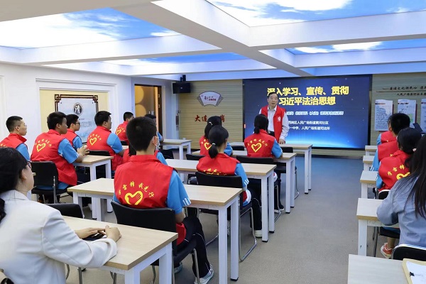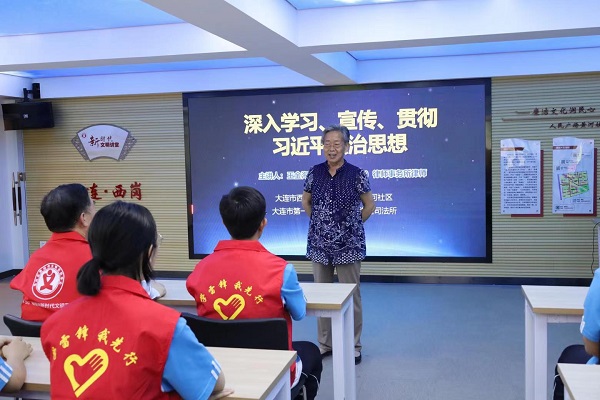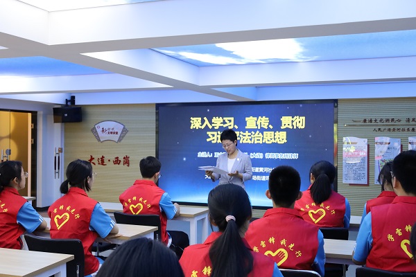 授课结束时大连市第一中学义工站老师崔雅诺表示,要带头做好习近平法治思想宣传工作,把习近平法治思想研深悟透,做到学思用贯通、知信行统一,扎实推动习近平法治思想进校园、进社区,为培养德智体美劳全面发展的社会主义建设者和接班人贡献力量。