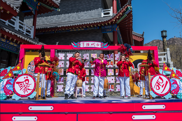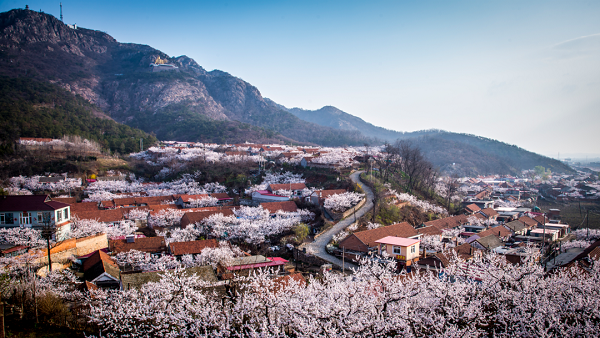 杏花迎春绽放,孤山镇半城红瓦半城花。