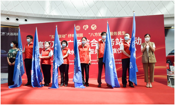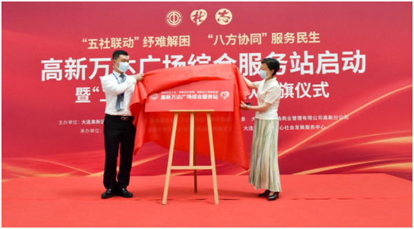 8月2日,由大连高新区总工会、社会管理局、七贤岭街道联合创建的我省首个创新民生综合服务站在大连高新区万达广场落成启动,大连市总工会、大连市民政局、大连高新区有关部门领导为服务站揭牌,同时举行“上善若水”志愿服务队18支队伍授旗仪式。
