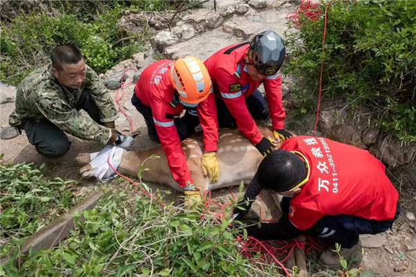 梅花鹿掉进岩缝四脚朝天 志愿者5小时岩缝救援终获成功