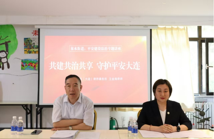 王金海律师是大连市信访工作联席会议信访案件评审委员会专家评审员,长期担任人民监督员、社区法律顾问,他结合从事律师工作的经验,重点介绍了预防学生暑假期间饲养宠物伤人、网络打赏、在小区骑平衡车、游泳等安全问题,并就邻里纠纷如何调解解决,引导大家坚持和发展新时代“枫桥经验”、“浦江经验”,切实抓好矛盾纠纷多元化解机制,全面收集解决人民群众法治诉求,着力排查化解矛盾纠纷,精准开展法治宣传,构建民意联排、矛盾联调、法治联宣、党群连心的工作格局。