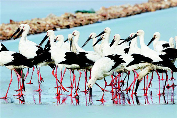 11月28日,100余只东方白鹳飞抵旅顺口区双岛街道张家村。视频显示,它们停留在海边潮间带湿地,时而在水面上高雅地翩翩起舞,时而集群展翅翱翔,现场一幕蔚为壮观。大连市野生动植物保护协会常务副会长谷国强说,只有非常珍稀和濒危的野生动物才能进入国家重点保护名录,东方白鹳与国人熟知的大熊猫、东北虎、白鳍豚等一样,也被列入国家一级重点保护野生动物。