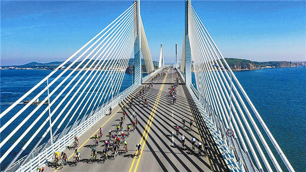 2.长山群岛环岛自行车比赛途经长山大桥。