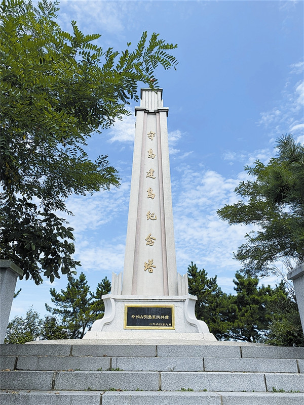 9.如今的守岛建岛纪念塔巍峨耸立在纪念公园苍松翠柏中。