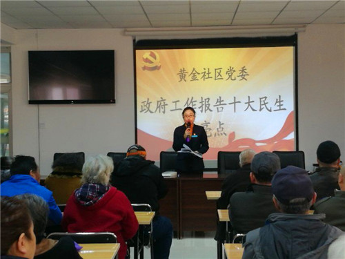 3月12日,黄金社区党委以党员会为契机,开展“政府报告十大亮点专题会议”,将政府惠策亲民的亮点,与党员代表们共同学习了解。