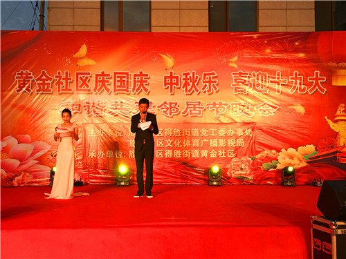 9月27日晚,黄金社区在居民楼院中举办“庆国庆 中秋乐 喜迎十九大 和谐共建邻居节” 晚会,伴随着喜庆的腰鼓声拉开了此次邻居节晚会的序幕。