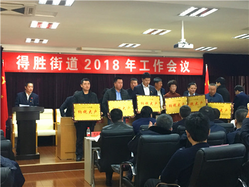 会上,在响亮的国歌声中拉开了会议的序幕,首先,街道姚若鹏主任向到场的党代表、企业代表、纳税大户、社区工作者们进行了“解放思想发展 凝心聚力促和谐 继续为推进全街经济社会发展而努力奋斗”得胜街道2017年工作报告,对成果与不足一一进行详细宣读;随后,街道王心盛主任宣布授予辖区企业与个人荣誉名单,黄金社区在七个社区工作评比中,荣获第二名的好成绩,得到了街道领导的肯定与鼓励;最后,街道王世海书记提出了四点要求,强调新的一年里要继续扎实贯彻十九大精神,加强队伍建设,提高业务能力,“不多跑一趟”要向“最多跑一趟”的工作目标坚实迈进,开阔视野,真抓实干,将得胜街道建设成为更加繁荣、更具魅力、更为和谐的现化街道而努力奋斗。