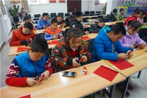 活动中,“五老”志愿者宁秋玲阿姨给同学们耐心讲解和分步演示,为大家示范了一些“剪纸”中需要注意的步骤和技巧,并手把手地教同学们剪纸的要领,同学们认真地听、仔细地折,剪着自己喜欢的图案。剪纸作品陆续从同学们的手中完成,虽然作品很稚嫩,也有瑕疵,但是看着自己剪出的作品,孩子们别提多高兴了,社区活动室顿时年味十足。