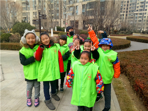 1月18日上午9点半,数十名孩子穿着志愿者的马甲,手拿清洁工具,在社区工作人员和老师的带领下,沿着华润小区的花园开始工作起来,沿途拾捡草坪和小道上的各种生活垃圾,就连路灯上、地面上粘贴的小广告也被孩子们铲除干净。寒冷的冬日,孩子们没有喊冷喊累,反而紧紧盯着地面,搜寻垃圾,用自己的行动争做环保发展的一份子。