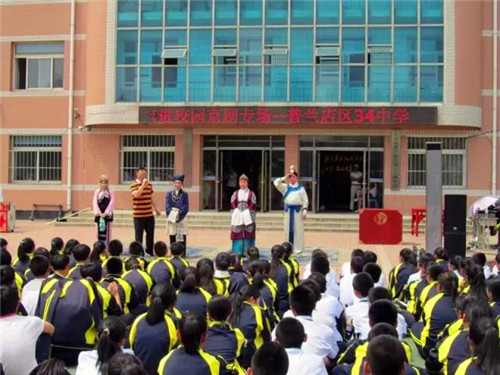 6月12日下午,普兰店区第三十四中学操场上欢声笑语,掌声阵阵,大连艺术家进校园京剧34中专场在同学们的期待和欢呼中隆重开场。
