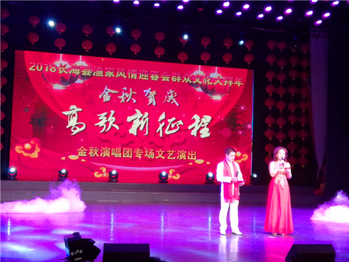 近日,2018年长海县渔家风情迎春会“群众文化大拜年”塔山社区金秋演唱团专场文艺演出在县文化中心精彩呈现。由开场舞《欢笑的日子》拉开了序幕,女声独唱《一个妈妈的女儿》、器乐合奏《中华美》《沿着社会主义大道奔前方》、表演唱《渔家生活多么美》、男声齐唱《开渔歌》、女声独唱《中华是我家》、歌曲联唱《我为祖国献石油》《我的祖国》《南泥湾》《要问我们想什么》、二胡齐奏《长山岛好地方》、表演唱《放海灯》、双人舞《九儿》、男生独唱《老伴的手》、舞蹈《水兵舞》、歌舞《幸福赞歌》等十三个节目,把舞台变成了一片欢乐的海洋,把节日的欢乐带给了广大观众,充分展现了塔山社区金秋演唱团的独特魅力。下午和晚上的两场演出,为海岛群众奉献了一台丰盛的文化大餐。居民表示这场演出贴近海岛居民,同时丰富了海岛居民的精神文化生活。