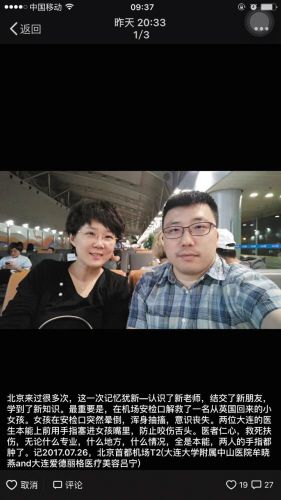 几乎与此同时,准备回大连的候机人群中还有位女士跑向突发癫痫的女孩。她是大连大学附属中山医院眼科医生牟晓燕。27日记者采访她时,牟晓燕还在手术台上。但牟晓燕的微信朋友圈里抒发了和吕宁一样的感受:救死扶伤,无论什么专业、什么地方、什么情况,都是本能。