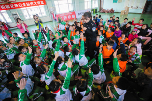 我市交警部门十分重视交通安全知识进校园,一方面让孩子们多注意交通安全,保护自己,另一方面希望“小手拉大手”,让孩子们影响家长,影响更多人。