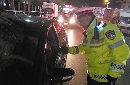 当人们在家里热热闹闹地吃团圆饭,守候在电视机旁收看2018年央视春晚时,张勇带着中队民警们在郭水路设卡整治酒驾,“请出示一下驾驶证、行驶证。”“谢谢配合。慢点儿开,千万别酒后开车。”他们边检查边提醒过往司机遵守交通规则,虽然晚间气温偏低,但民警身上的荧光绿却发出暖暖的光。