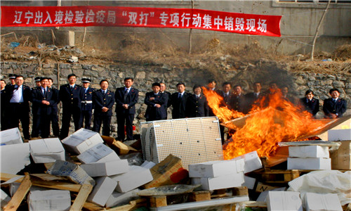 辽宁出入境检验检疫局“双打”专项行动集中销毁现场