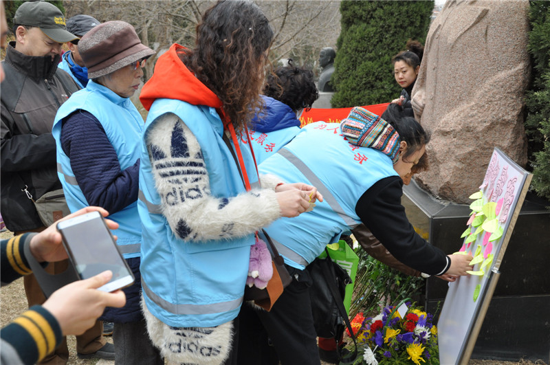 志愿者发放文明祭祀倡议书。(图片来源:新华社区 摄影:张晓卫)