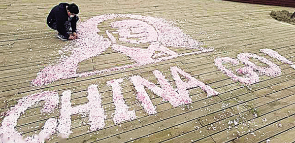 如果用樱花来拼出一幅画,你会选择谁?5月17日大连艺术学院雕塑专业的学生谢继超、陈冠宇用樱花拼出钟南山的肖像画,还在旁边写了“CHINA GO!”陈冠宇说,这是中国加油的意思,在疫情期间常被提及放在这里也是为了表达对中国的祝福。