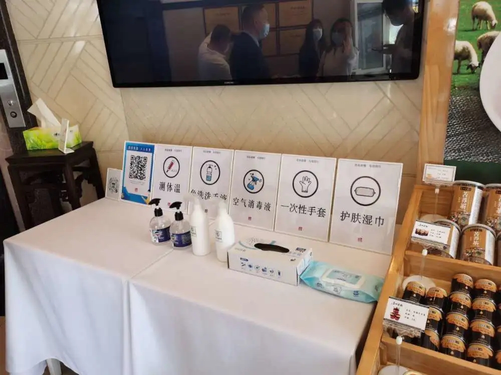 消费者进店时,都要测量体温、扫健康码、防疫行程卡、登记信息;进入电梯前,电梯一客一消毒;就坐用餐时,每位顾客配有一副公勺公筷。
