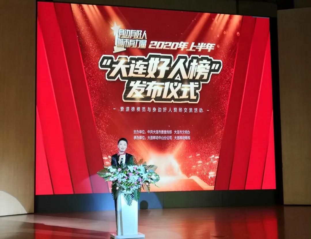 7月30日,由中共大连市委宣传部、大连市文明办主办的2020年上半年“大连好人榜”发布仪式暨道德模范与身边好人交流活动以无观众线上直播形式举行,来自全市各行业和11个区市县的55位“大连好人”(含集体)名单揭晓,38万名市民及网友通过新浪微博直播收看了仪式,2.3万人点赞。