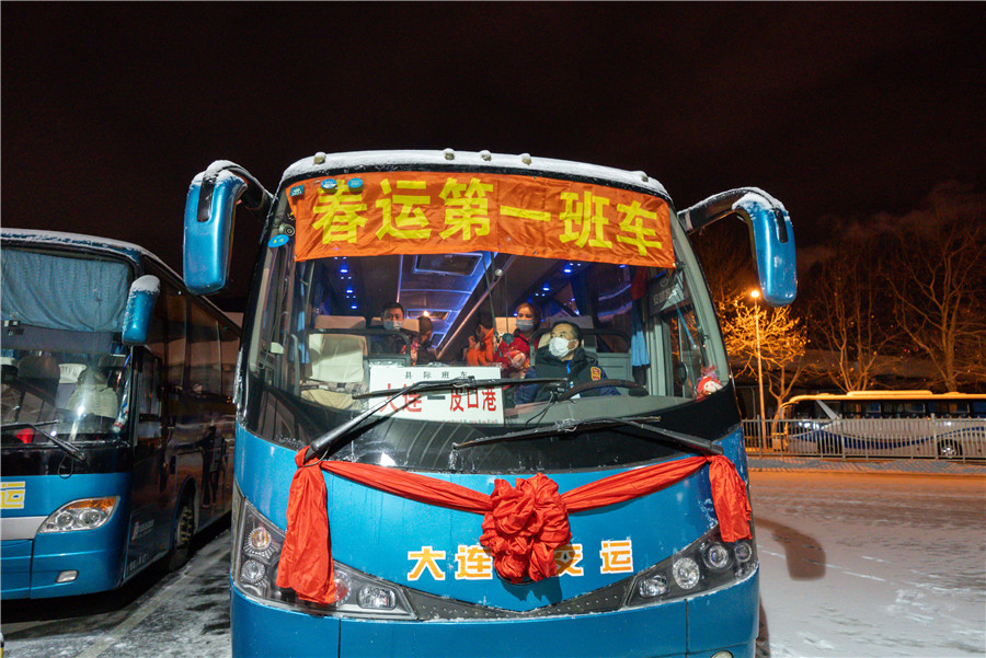 5时50分,由大连去往皮口港的长途客车运载着19位旅客,徐徐驶出站台,正式拉开了2021年春运序幕。