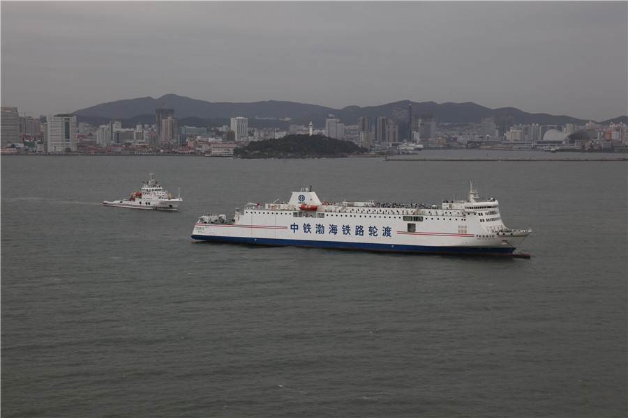 (图为春运首日,中铁渤海号渡船波浪起航。拍摄者:卢婉;图片来源:半岛晨报)