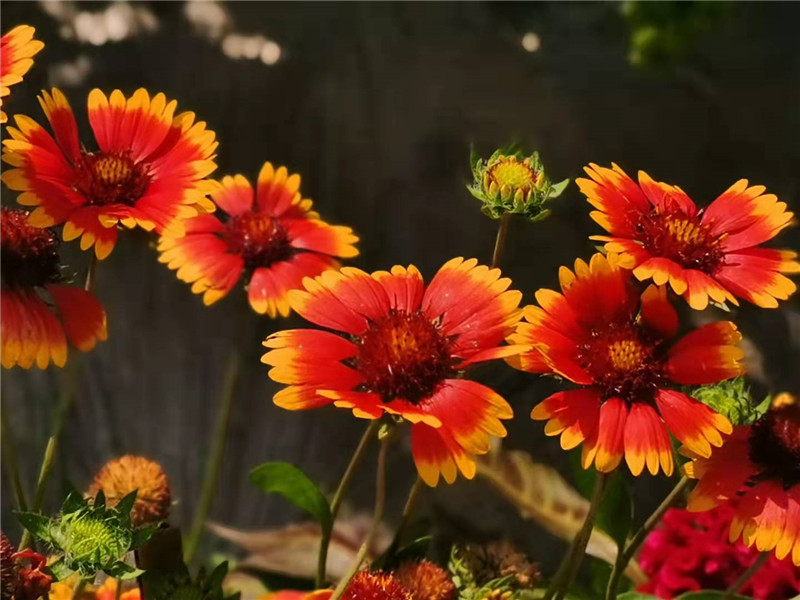 鸡冠花、四季梅等花卉争芳斗艳,煞是好看。