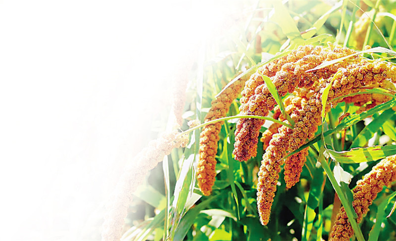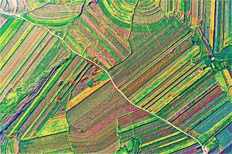 (正待收割的粮食谷物构成五彩斑斓的图画。 摄影:大连新闻传媒集团记者 吕文正)